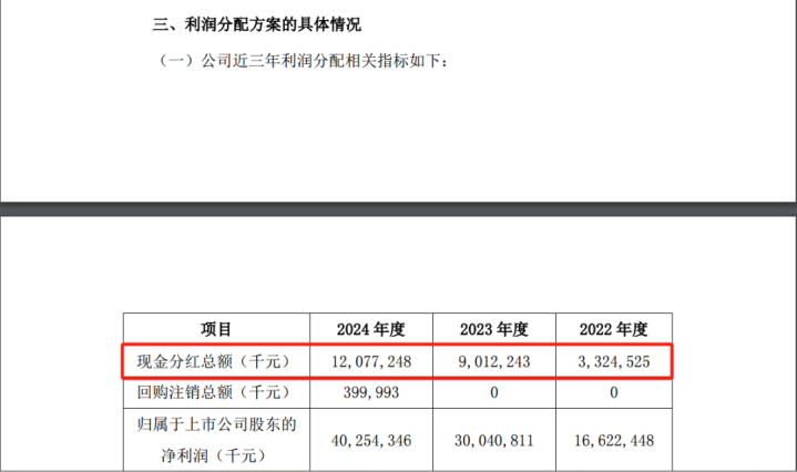 以此估算,比亚迪2024年年度现金分红总额约为120.77亿元(含税),占其2024年年度归母净利润的30%。